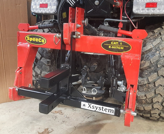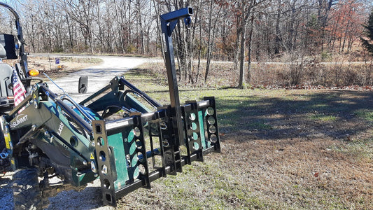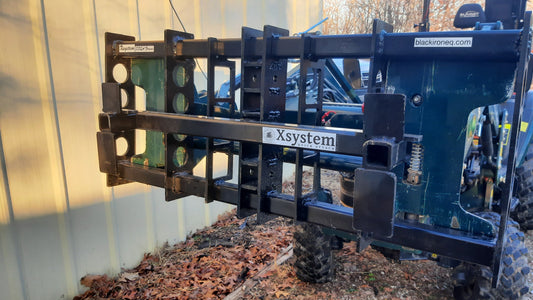 The Black Iron Equipment Xsystem is comprised of interchangeable attachments that fit the Xsystem quick attach frame for Front End Loaders. You can leave the Xsystem quick attach frame on your machine ready to go for the next Xsystem attachment. Unplug one attachment and plug in the next and keep the work going. Because the Xsystem is interchangeable you can easily store or transport the Xsystem frame and attachments. The Xsystem is an ideal tool set for contractors, landscapers, homeowners, ranchers and farmers. The Xsystem quick attach frames utilize a standard 2" receiver style mounting system with three different mounting positions. The options are endless for attachments with the Xsystem.